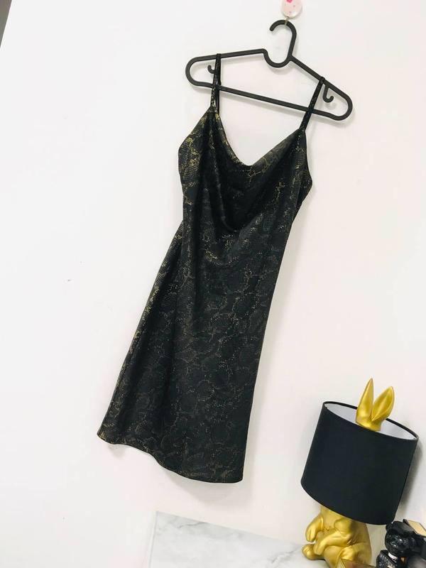 сукня принт пітон boohoo золотий принт не такий яскравий, як на моделі. напівобхват грудей 35 тягнеться до 50 напівобхват стегон 48 довжина від плеча 90 #4308
