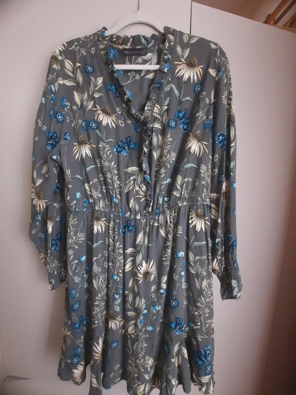 Продам платье бренд M&S размер L/Xl. в области талии есть резинка, на рукавах тоже есть резинки. Платье легкое и очень красивое, длина выше колена. состояние новой, дефектов нет.