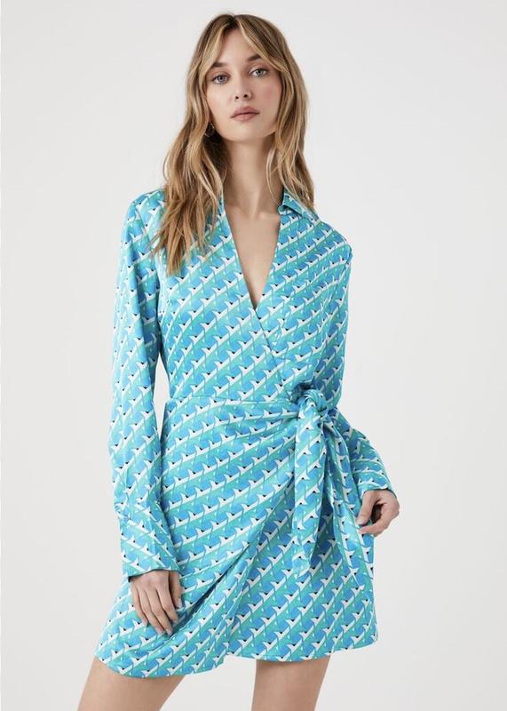 Яскрава літня сукня на запах (сукня-халат) з абстрактним принтом. Сатинова тканина – дуже приємна до тіла. Манжети на ґудзиках. У талії регулюється за рахунок завʼязки. Розмір S, підійде і на XS. Матеріал: • Поліестер • Спандекс
