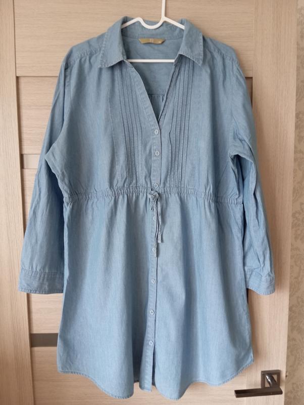 Сукня туніка жіноча тканина тонкий джинс 100%котон Довжина найдовша 86 см довжина найкоротша (по боках)75 см довжина рукава 53 см ширина по лінії грудей 65 см ширина в стегнах 63 см