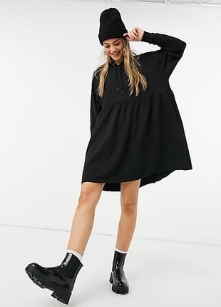 коротка чорна котонова сукня Monki S з капюшоном і кишенями