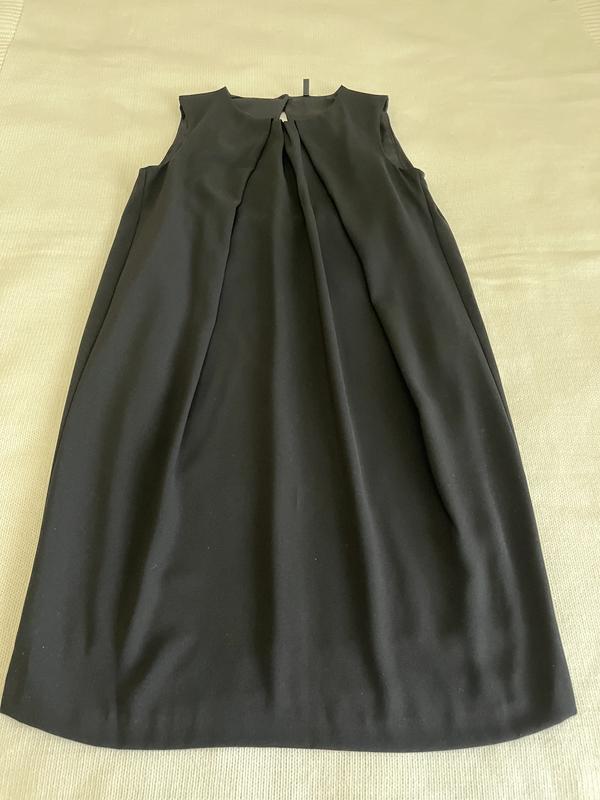 «Маленька чорна сукня» від Benetton на весну та літо. Мінімалістична, але із стильними деталями: зустрічна складка спереду, 2 маленькі складки по спинці, невеликий розріз по спинці та маленький гудзик, обтягнутий тканиною. На підкладі, вільна, без витачок.