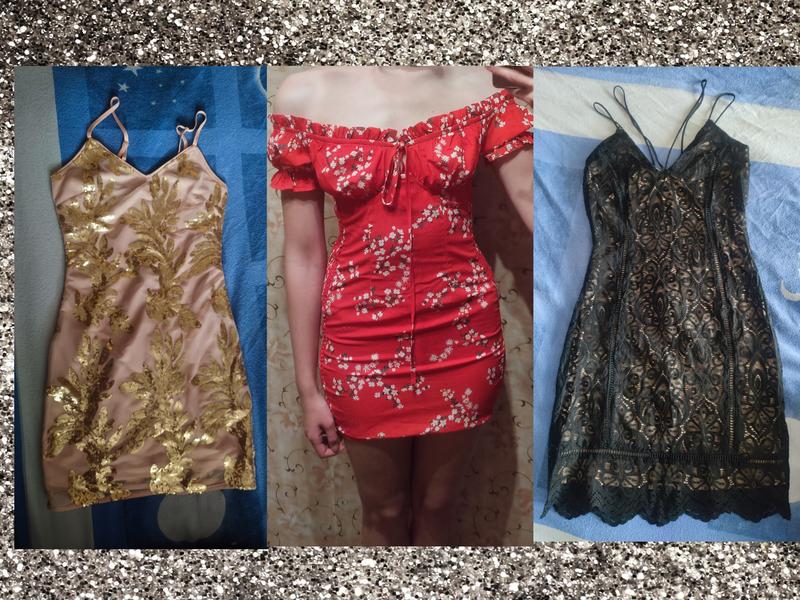 платья размера S, красная красиво тянется, сзади сплошная резинка черная и золотистая платья имеют подкладку бежевую одягались 1-2 рази, не ношу тому продам. цена 250/1шт