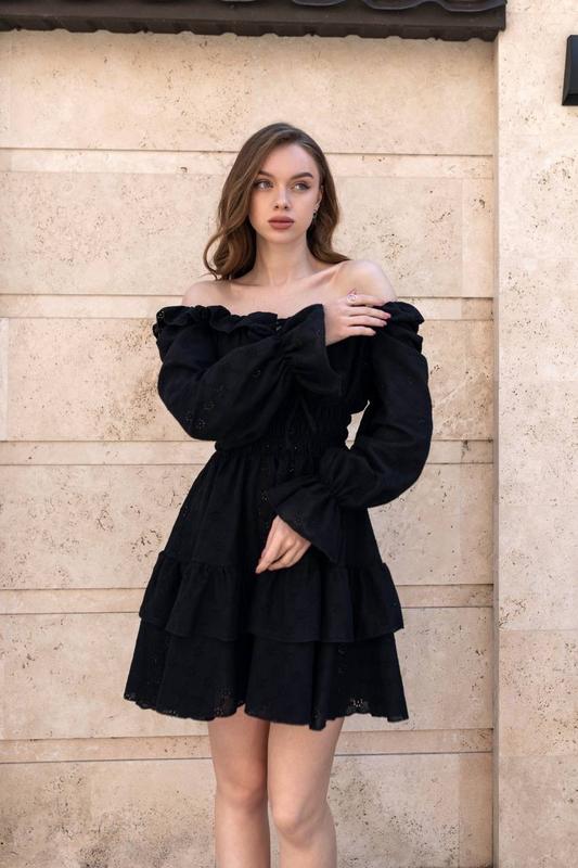 Жіноча літня сукня коротка міді чорна з довгим рукавом