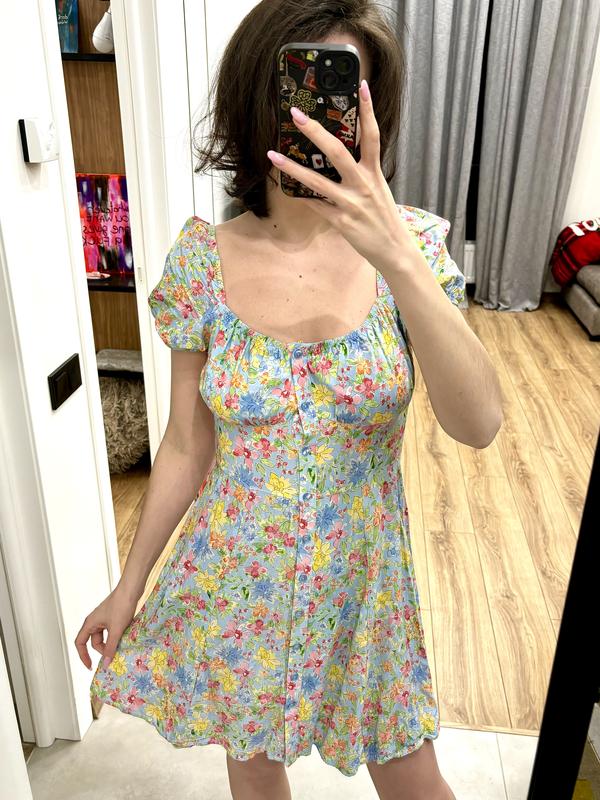 Легка літня сукня у яскравий квітковий принт. Дуже жіноча та сексі. Стан дуже гарний.