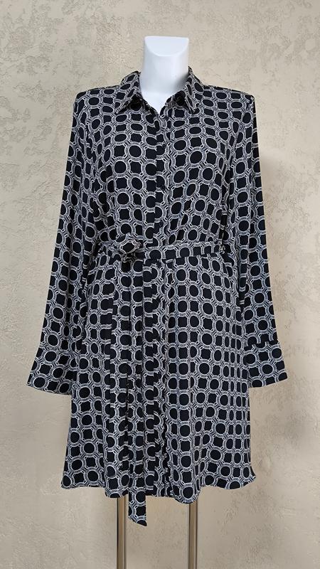 Сукня New Look з принтом застібкою спереду на гудзики та паском 💫Стан нової речі без дефектів 💫РОЗМІР 16 💫 Склад 100% поліестр 💫ЗАМІРИ: довжина спинка 95 см., плечі 40, ПОГ 56 см., пот 44-50 резиночка, пос 64, рукава довгі 63.