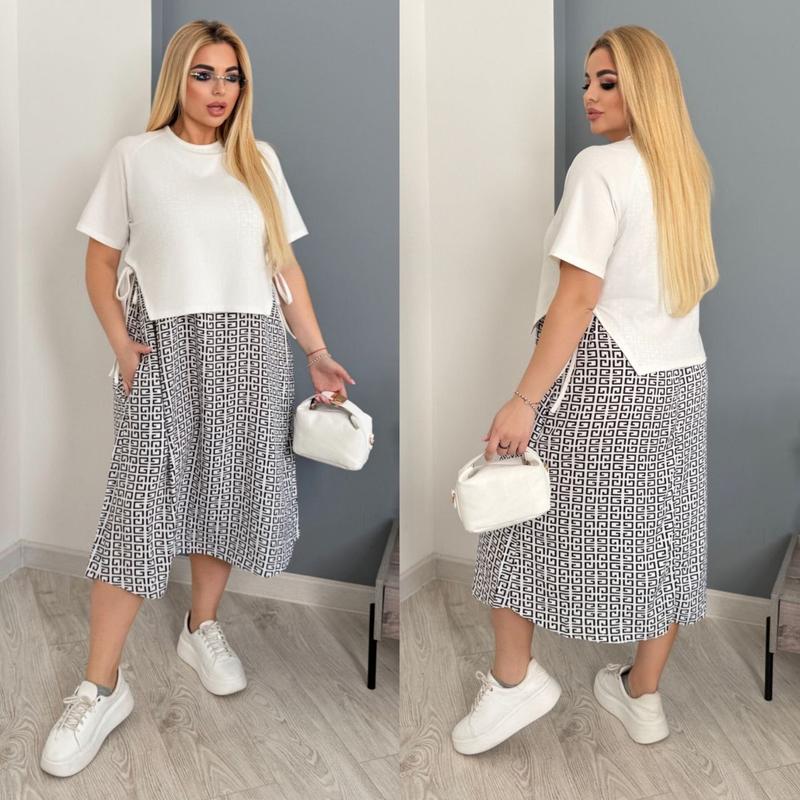 ⬆️Сукня Модель 191❤️385 Размер: 48-52, 54-58, 60-64 Ткань: турецкий кулир + штапель Платье свободного кроя в стиле бохо. Натуральная, качественная ткань, не парит. Стильно смотрится за счет многослойного эффекта, делает скучает стройнее, по бокам кулиска. Замеры: 48-52 Груди 114 см Талия 120 см Стегна 140 Длина изделия 120 см 54-58 Груди 126 см Талия 130 см Стегна 150 см Длина изделия 124 см 60-64 Груди 136 см Талия 140 см Стегна 160 см Длина изделия 125 см