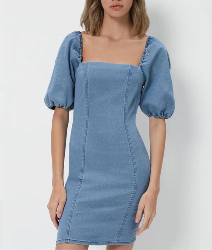 Оригінальне, джинсове плаття від Cropp. Еластична тканина, ідеально сідає по фігурі. Розмір М (на S-M). Нове, з біркою. Заміри: напівобхват грудей — 41-45 см, напівобхват талії — 34-38 см, напівобхват стегон — 44-50 см, довжина — 85 см.