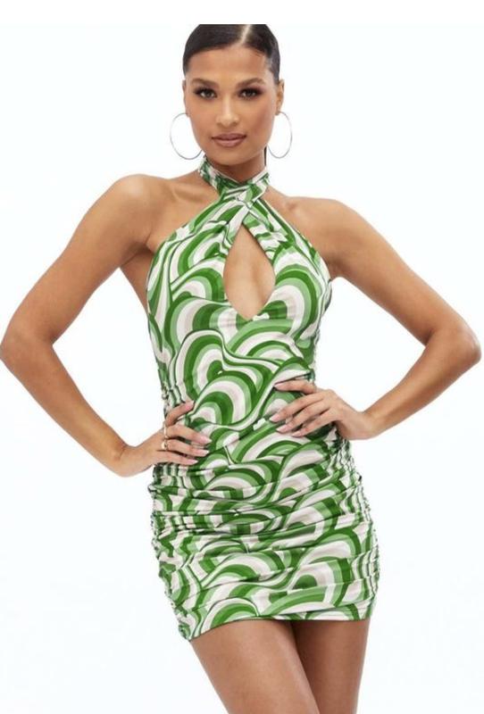 "Pink Vanilla" з принтом. Розмір uk 8. Заміри в нерозтягнутому вигляді: -НОГ — 37 см; -ПОТ - 29 см; -НОС — 38 см; -довжина — 83 см. Параметри манекена, на якому зроблено фото: -зріст — 185 см; -обхват грудей — 87 см; -обхват талії — 64 см; -обхват стегон — 92 см.