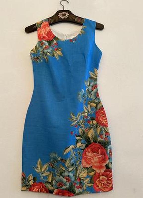 Плаття в квітковий принт. Стан нового. Із дефектів,фабричний шов внизу-невидно в носінні. Бірка з складом відсутня. Тканина на дотик щільний котон з домішками можливо трішки поліестеру,гарно тримає форму. Без підкладки,непросвічує. Довжина від плеча 90 Плечі35-37 Пог 42-44 Пот35 Бедра 46-47 Можна використовувати як плаття вишиванку