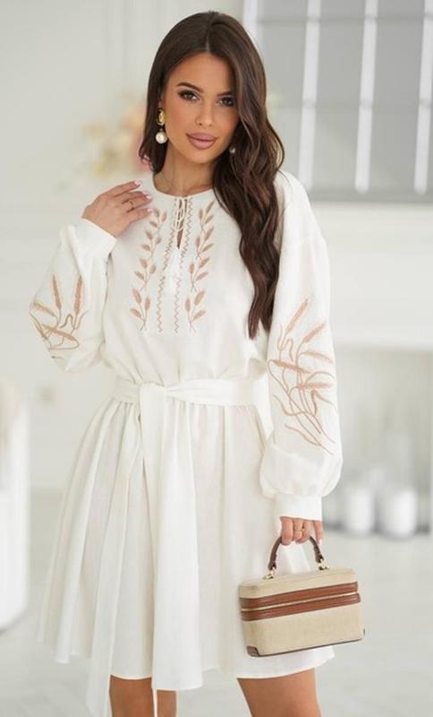 Сукня нова ще з біркою заміри: ог: 94-97 0т: 71-86 довжина 90 рукав 50 колір молочний талія на резинці+пояс спідниця розкльошена
