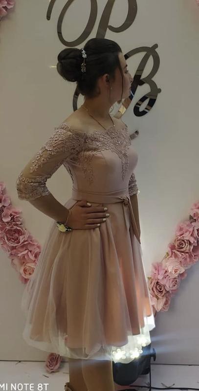 Підійде на груди обʼємом В довжина при зрості 150 до колін Колір пудровий Відкриті плечі Пишне
