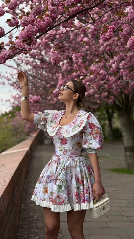 Легка романтична міні сукня приталеного силуету з пишною спідницею - з паском бантиком, за допомогою якого підкреслюється талія, рукавами ліхтариками з контрастною оборкою та ніжним комірцем 🤍 Нижні шортики додають обʼєму спідниці та додають зручності в повсякденному житті🥰 Розмір с та м
