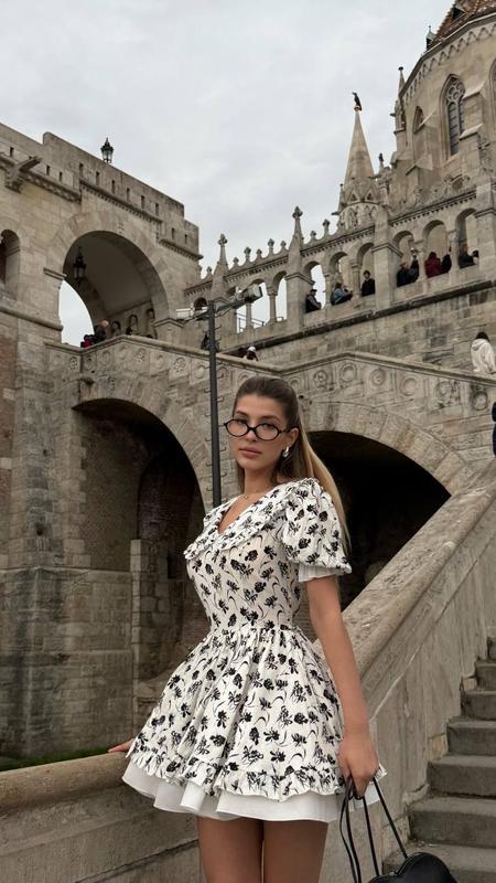 Легка романтична міні сукня приталеного силуету з пишною спідницею - з паском бантиком, за допомогою якого підкреслюється талія, рукавами ліхтариками з контрастною оборкою та ніжним комірцем 🤍 Нижні шортики додають обʼєму спідниці та додають зручності в повсякденному житті🥰 Розмір с та м