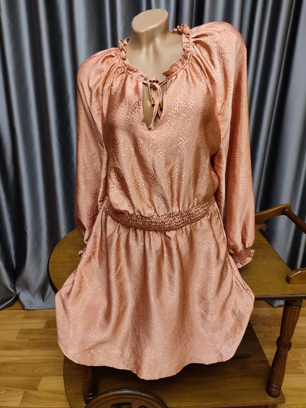Розмір зазначений 14 Підійде й на більші розміри Довжина 95 Довжина рукава від горловини 73 Напівоб'єм грудей будь-який за рахунок крою Напівоб'єм талії 38-53 Напівоб'єм стегон до 62