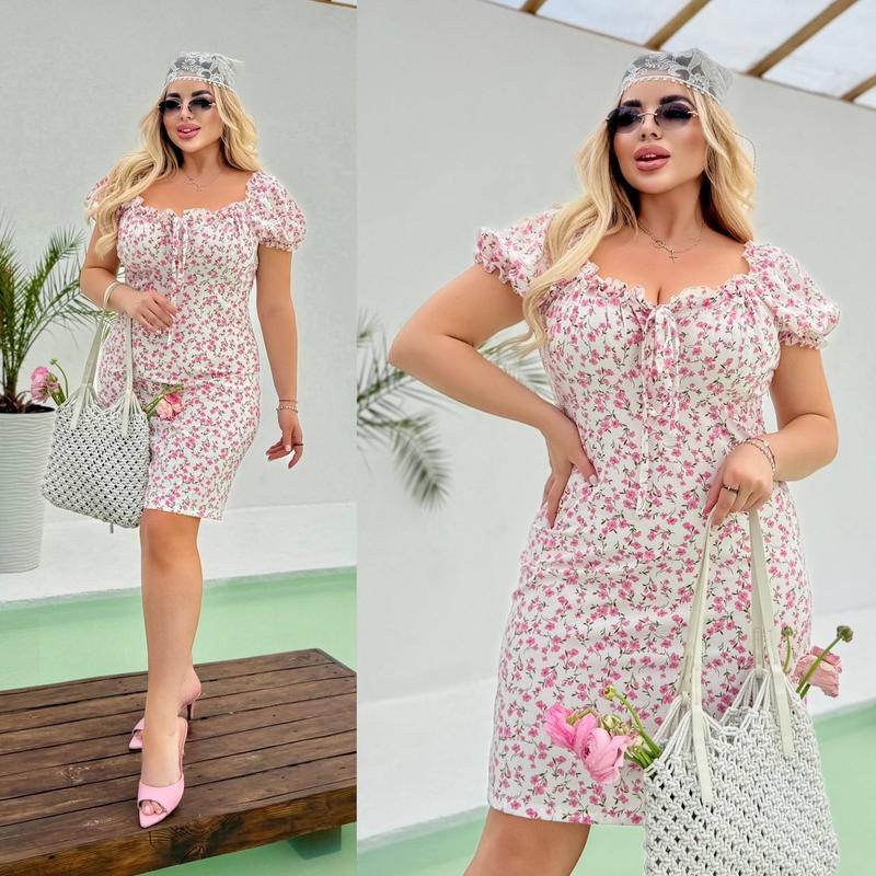 Романтична сукня в довжині міні з акцентом у формі зав'язки на грудях❤️ Розмміри: 50-52;54-56 Тканина: софт МОД # 1351kux ВИМІРИ 50-52 Груди 106-112 Талія 90 Стегна 112 Довжина 87 54-56 Груди 112-118 Талія 102 Стегна 124 Довжина 95