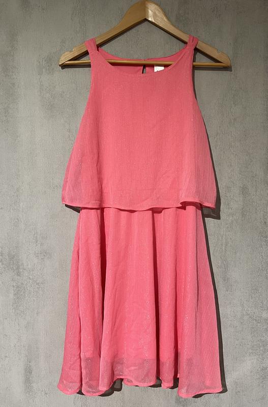 Вільна коротка сукня бренду Here+There Красивий насичений рожевий колір з блиском, в таліі легка резинка.