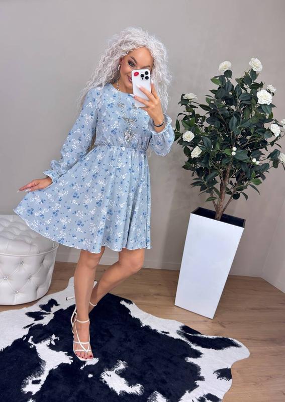 Сукня жіноча плаття софт блакитне квітковий принт довгий рукав