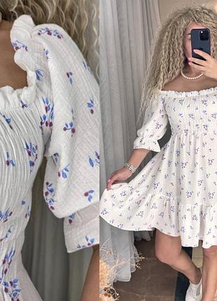 Новинка❤️ Тканина: муслін Розміри: 42–44, 46–48, 50–52 Сезон: весна/літо Ціна: 790 грн Працюю по повній оплаті. Є обмін/повернення На фото сукня пошита з бавовняної тканини з еластаном, що ідеально підходить для літнього одягу. Опис тканини: Ніжна літня сукня з відкритими плечима, оздоблена дрібним сердечком . Верх виконаний зі зборкою-смокінг, що чудово прилягає до фігури, створюючи комфорт і жіночний силует. Об’ємні рукави ¾ з рюшею додають образу романтичності. Спідниця з легкою оборкою по низу створює ніжний об’єм і м’яко колихається при русі.