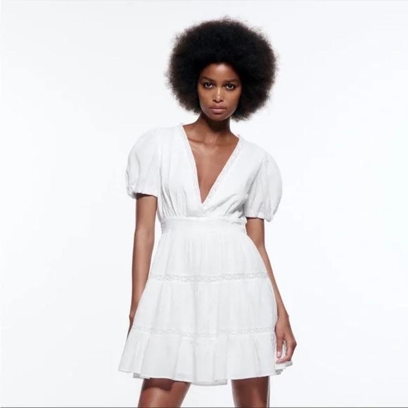 Плаття нове, не носилося, поспіхом була знята бірка 😿 Розмір на бірці XS, але воно повномірне, то ж на XS-S підійде. Дивіться заміри 🤗 Плечі 34 Ширина під рукавами ~ 45 вільно за рахунок вирізу Талія 33 (на спині резинка, тягнеться) Ширина низу 105 Довжина рукавів 24/6 Довжина по спинці 83