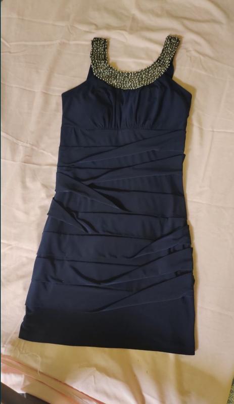 Темно синя жіноча сукня. Лягає по фігурі. Верх оброблений бісером. Без дефектів. Розмір XS-S. Тягнеться. Додаткові заміри на вимогу.