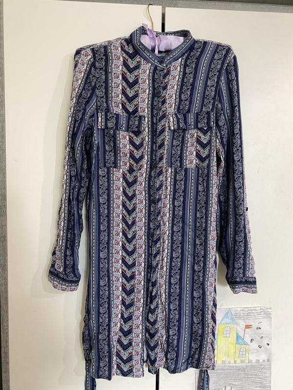 Платье рубашка из вискозы на жаркое лето Есть поясок и модная подвернуть рукав и застегнуть Состояние очень доброе, пару раз надевает Длина от шеи 86 От подмышки 56 Груди 43 Плечи 35 Рукав 55 Пересилаю Самовозиватель Позвонки