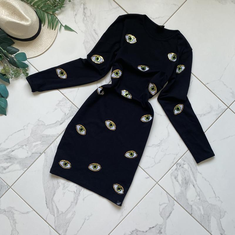 Сукня чорна міні в принт стан ідеальний, бавовна, тягнеться р 10 м -довжина 87, рук 59 -нОг 45-52 -нОт 37-45 -нОб 48-57 ФОТО НА ТІЛІ НЕМАЄ