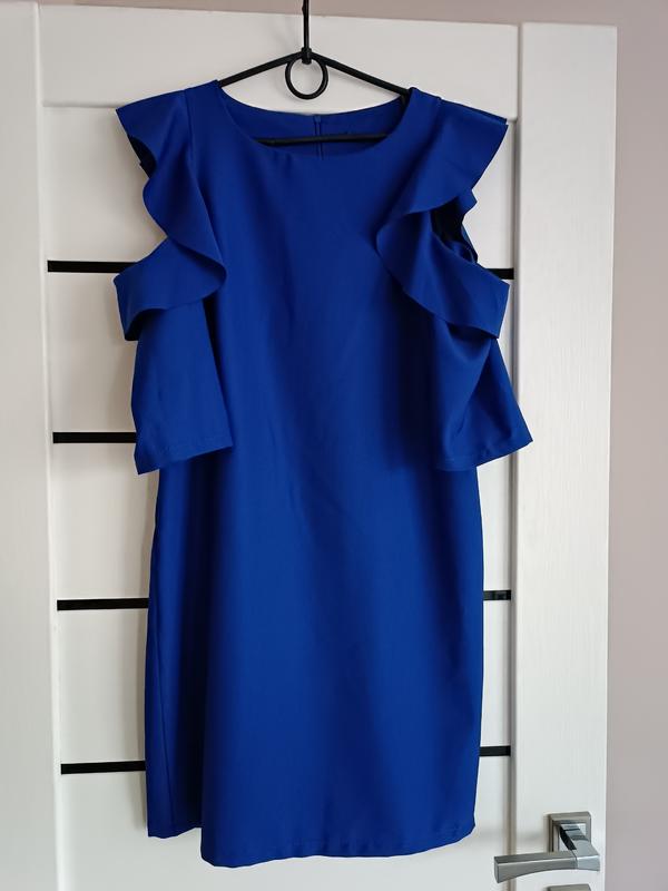 Яскрава синя сукня розмір S цікаві рукава, з рюшами, і трохи відкрите плече Стан нового, одягала раз заміри і фото можу вислати