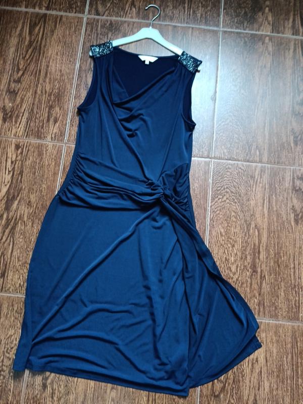 Сукня коктейль на вечірня святкова з драпіруванням і бісером темно синій трикотаж butt...