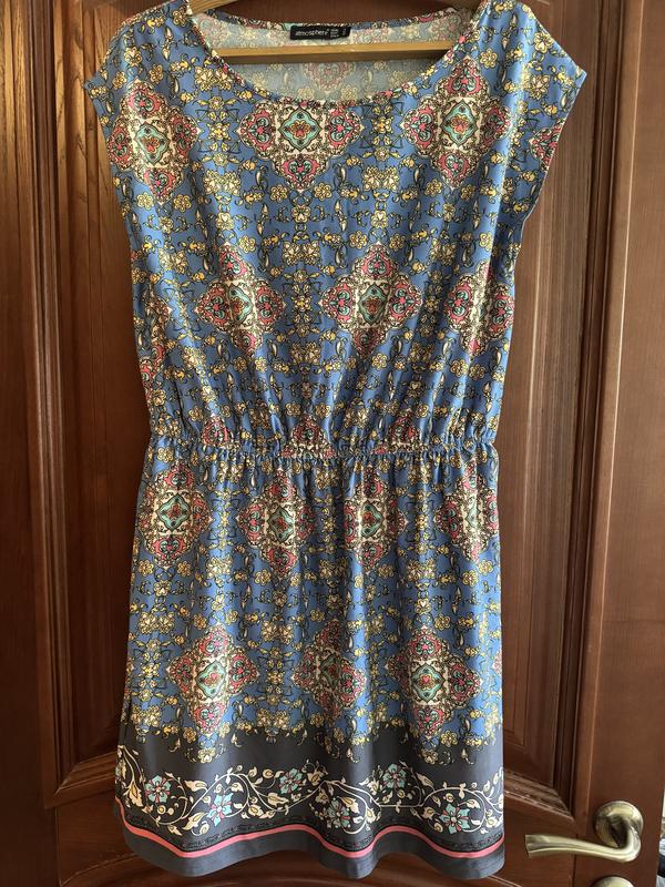 Летнее платье, размер С, посредине резинка, полиэстер, очень легкое и нежаркое, свободно садится