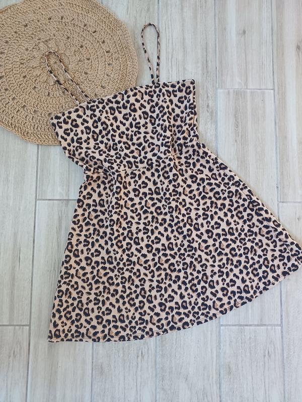 Красиве платтячко в лео принт Спідничка сонце-кльош Розмір вказано 40/12 можна S можливо нс ріст до 165 см Заміри: довжина з брителями 80 см груди 40 см талія 36 см Стан ідеальний,як новий
