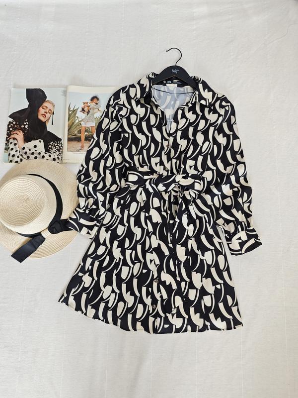 🌿платье в принт от Zara с поясом, ткань с эффектом атласа Размер:XS Замеры:ПОГ 45 см, ПОТ 30 см, длина 84 см, рукав от горловины 66 см