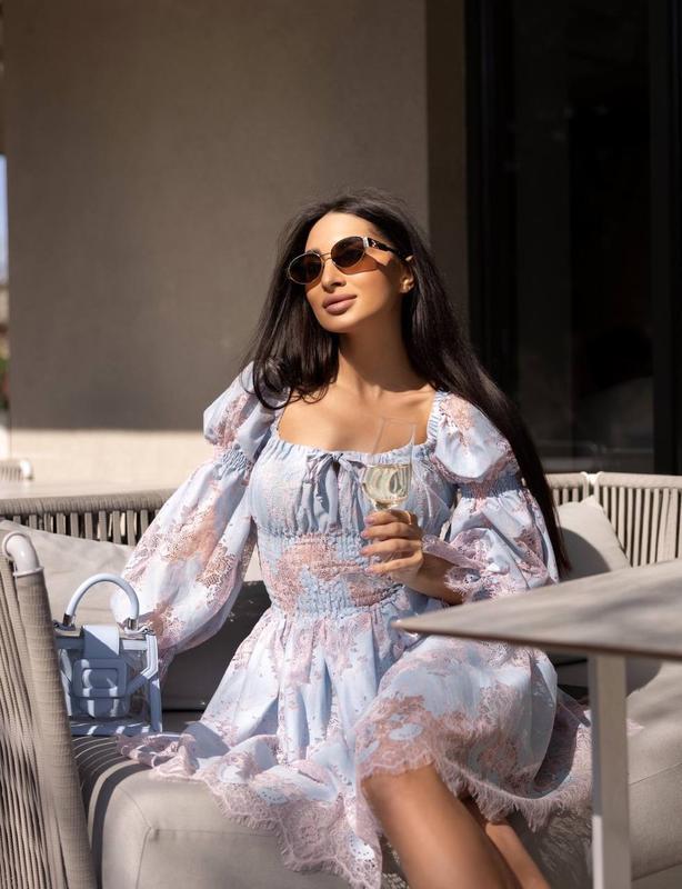 👆Сукня з шикарного крайового гіпюру Код 7985 Розмір L Колір - блакитний. Ліф та спідниця на батистовій підкладці. Спинка і груди на нитці резинці (ідеальна посадка) Обʼємний рукав, плече на резинці (можна носити і в спущеному варіанті). Груди регулюються куліскою