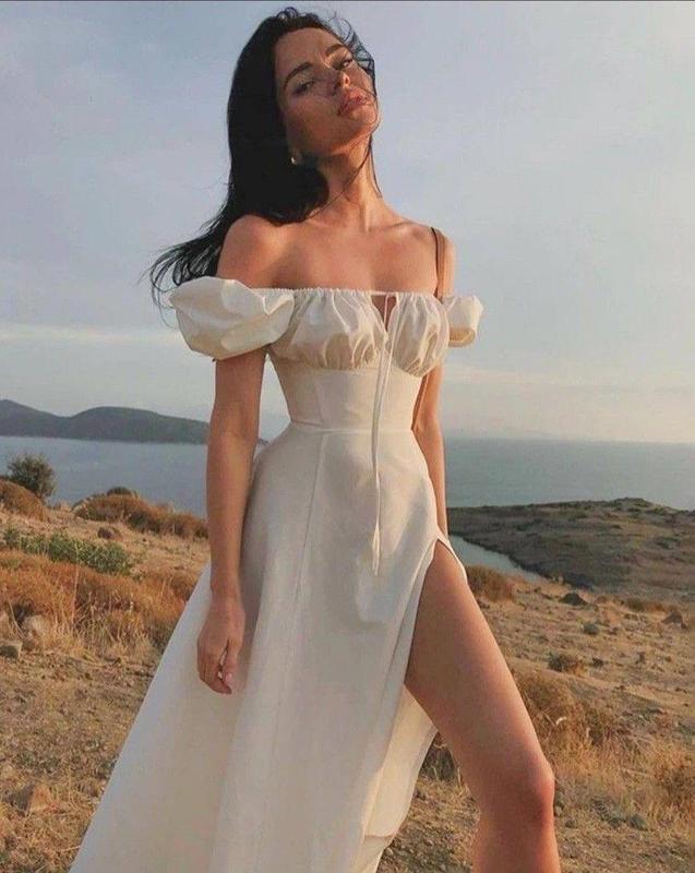 📝Арт: 1495-078 Сукня Ткань: качественный софт Размер: 42-44, 44-46 Цвет: белый Идеальное базовое платье, платье миди самого универсального кроя, которое подчеркивает талию, и красиво открывает ключицы, рукав на резинке и кулиска на комди