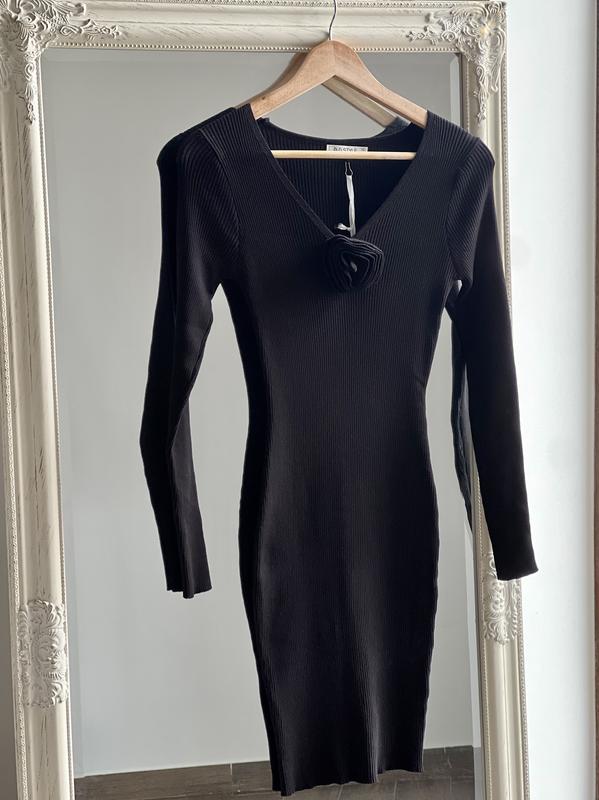 трикотажное платье с акцентной розой Нова Размер по набору не указан на S-M Длина 86см Плечи Длина рукава 57см Пог 28-56см Пот 23-55см Поб 28-65см Очень хорошо тянется