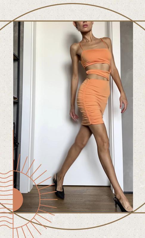 Яскрава міні сукня фігурі вирізи помаранчева бретелі плаття трикотажmango hmкороткеzara пл...
