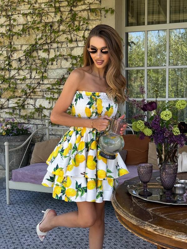 Яскравий. Соковитий. Літній. 🌞 Арт. BER Цей сарафан створений, щоб закохувати у літо з першого погляду! Еластичний верх із ефектом корсету м’яко підкреслює фігуру, а багатошарова спідниця з воланами дарує грайливий об’єм і легкість кожному кроку. 🍋 Лимонний принт — вибух свіжості, настрою та жіночності! У ньому ти точно не залишишся непоміченою. ▫️ Матеріал: принтований сатин ▫️ Розмір: універсальний (підходить на XS–L завдяки еластичному верху) ▫️ Ціна: 2190 грн 🌸 Ідеально для: — романтичних побачень — літніх прогулянок — яскравих фотосесій — відпустки біля моря Обирай сарафан, що створений для літа 💛