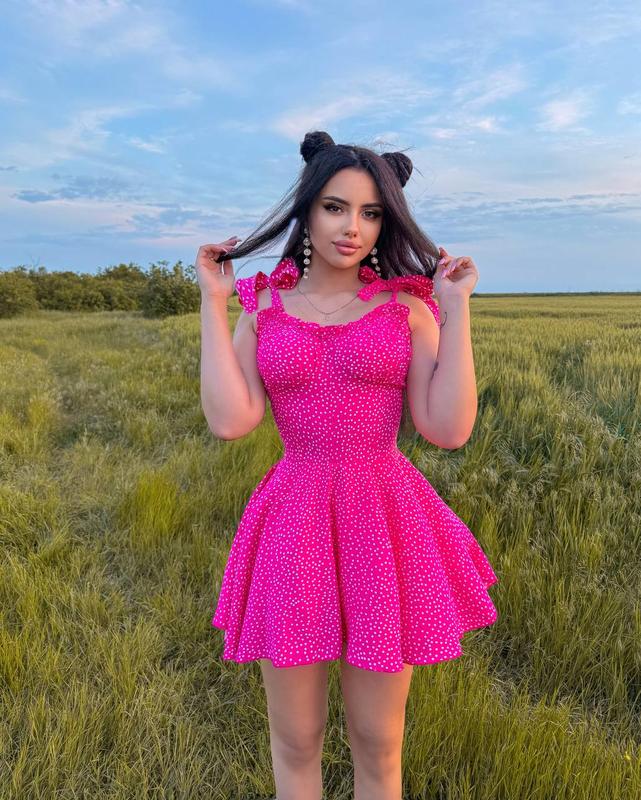 Сукня-комбез❤️ Тканина: софт принт Розміри: 42-44, 46-48 Кольори: білий з квітками, рожевий в горох, чорний в горох&&! Чудова якість✨ Комбез на зав‘язках. Спинка на потаємній блискавці. Під спідницею шортики. Ціна: 665 грн