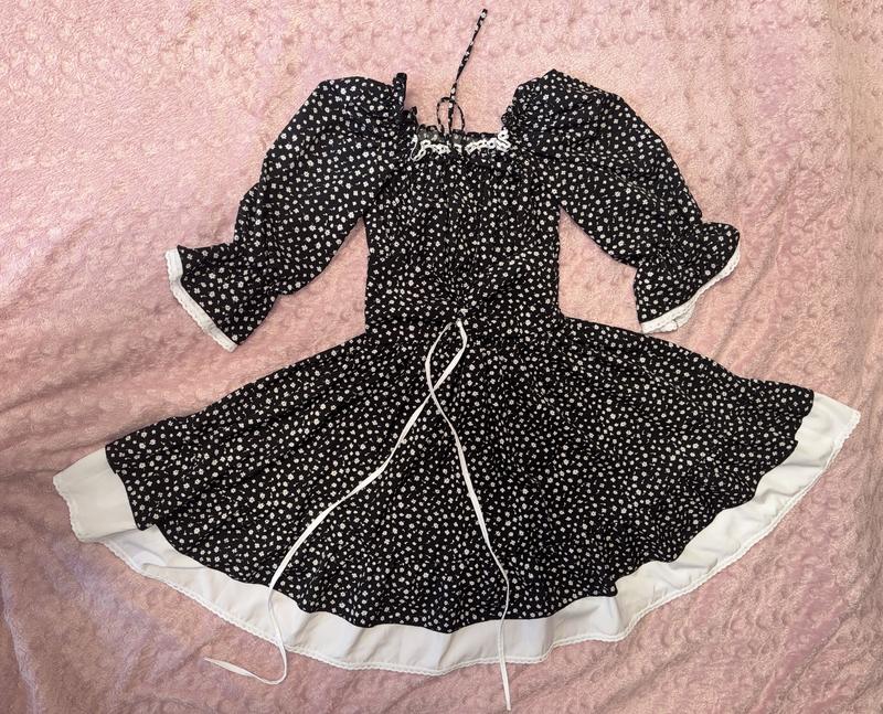 👗 Продам сукню чорну з білими квіточками 🔹 Легка та стильна сукня з білою підкладкою 🔹 Розмір: S–M (еластична гумка добре підлаштовується під фігуру) 🔹 Є резинка вгорі (на плечах), а також на рукавах 🔹 На грудях — зав’язки, знизу — корсет зі шнурочками на талії 🔹 Дуже жіночна, гарно сідає по фігурі 🔹 Стан: відмінний, одягалась лише один раз 🔹 Ціна: 350 грн 📦Надішлю новою поштою поштою 📲 Пишіть у дірект або дзвоніть/пишіть за номером: *************