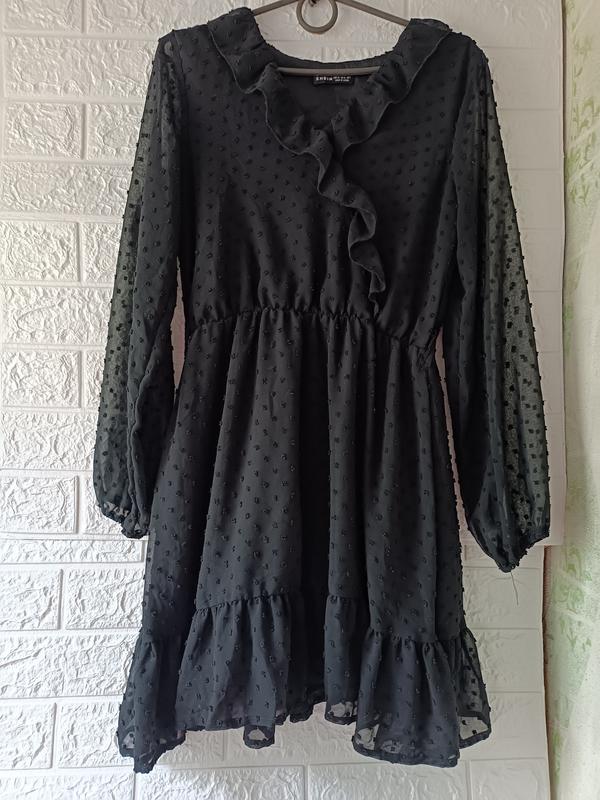дуже гарна чорна сукня, відомого бренду, довжина 87, п/ г 47, п/ б 62, плечі 39, рукав 59.
