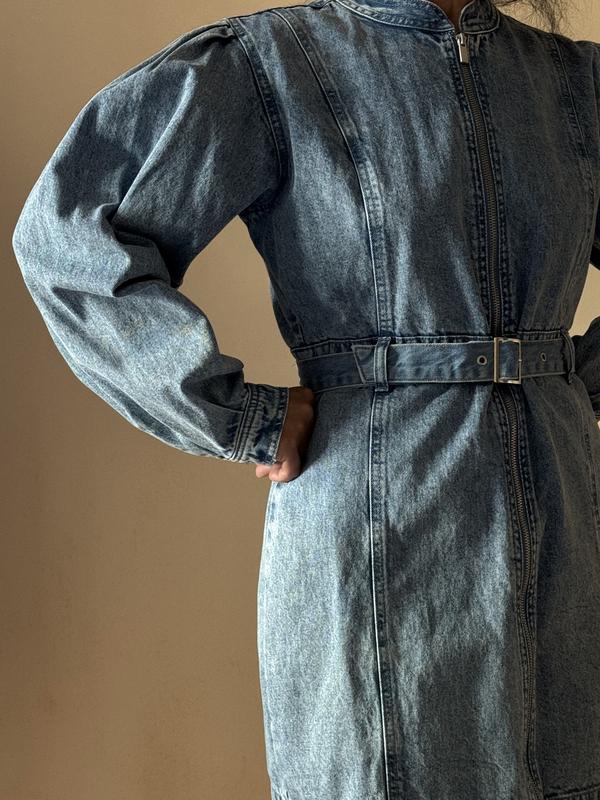 Платье из качественного денима (100% cotton). В отличном состоянии, имеет стильные объемные рукава и денимовый пояс, который можно заменить на другой.