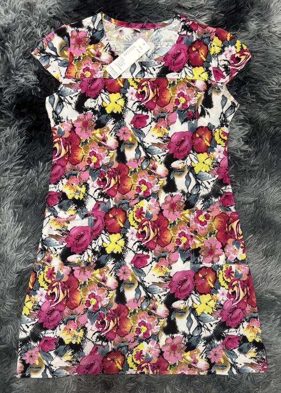 Нова красива сукня в квіти Яскрава, насичені кольори Розмір 42-46 підійде, на етикетці не правильний вказаний, тканина приємна до тіла, наче мікромасло, добре тягнеться, вільного кольору Всі бірки на фото Фото на собі не роблю