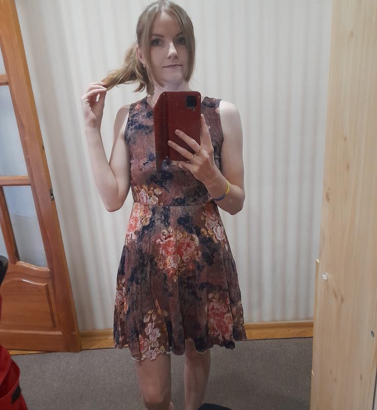 Ніжна квіткова літня сукня в ідеальному стані. Об'єм талії 60см Об'єм у грудях 80 см Довжина від талії 50 см Довжина від плеча 90см На спині застібка змійка. На талії ризинка. Матеріал -бавовна/еластан