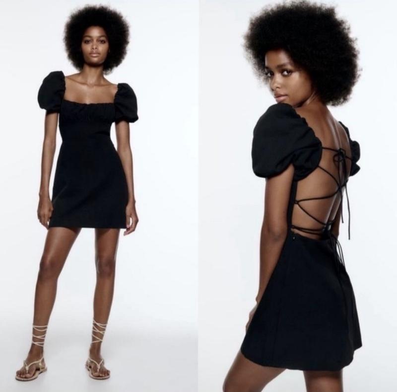 🌿чорна сукня від Zara з відкритою спиною, тканина 54% віскоза, 24 котон, 22 льон Розмір:М, маломірить Заміри:ПОГ 37 см, ПОТ 28 см, ПОБ 45 см, довжина 80 см