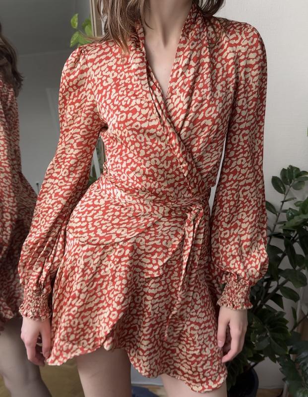 Сукня у чудовому стані, жодних дефектів. Тканина має легкий сатиновий блиск. На фото одягнена на параметри: груди 83, талія 69, бедра 93, зріст 172 . Мені у грудях трохи завелика, тому враховуйте це