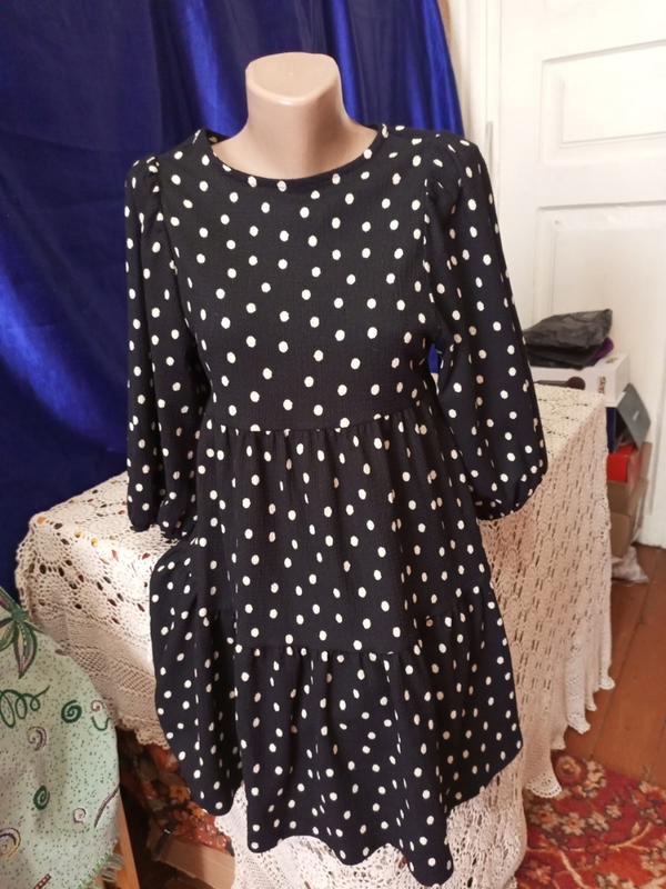 дуже га-на сукня з широкими рукавами. Тканина легка, добре тягнеться і тримає форму. Розмір 2хс, хс, с, невелика м. опис стан отлічний довжина 85 ширина груді 41 ширина бедер 68 рукав 46