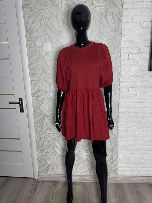Коротка трикотажна сукня плаття туніка з обʼємними рукавами next , m