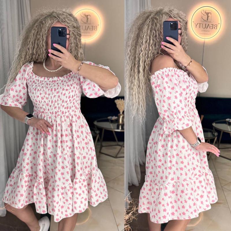 🎉Трендова сукня з мусліна🎉 Мод 201 Розмір:42-44,46-48,50-52 Тканина:муслін Сукня ,яка буде вам надавати впевненість в собі і в якоі ви будете стильно виглядати. Довжина до коліна. На грудях резинка .Можна одягати зі спущеними та з піднятими плечиками .Супер якість, по супер ціні. Ціна: 930 грн.имма