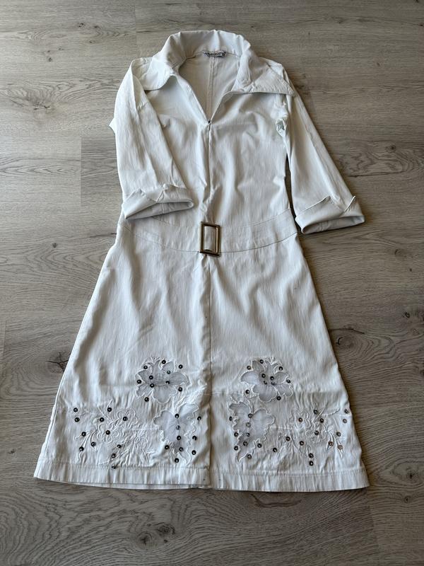 Дуже ніжна сукня, стрейчова. Замочок з переду до пояса, рукави загинаюится, поясок обманка, вставки кружева знизу- виглядає шикарно
