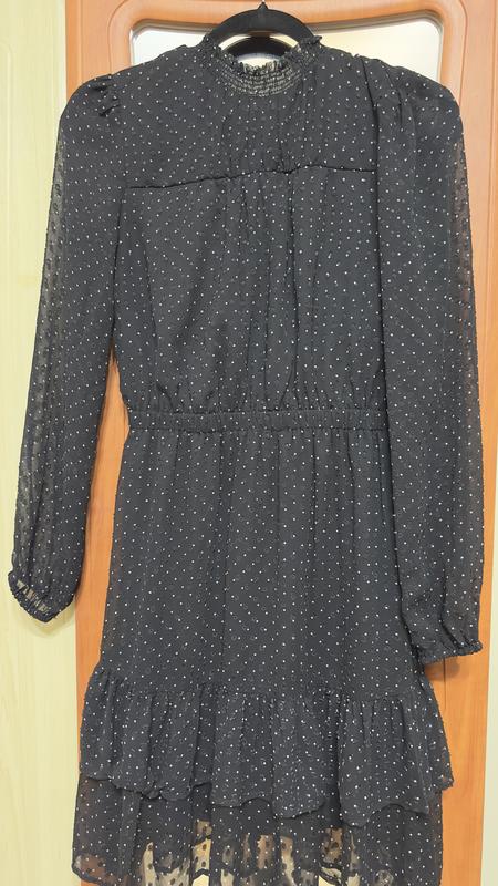 Сукня чорна в горошок , reserved , на довгий рукав